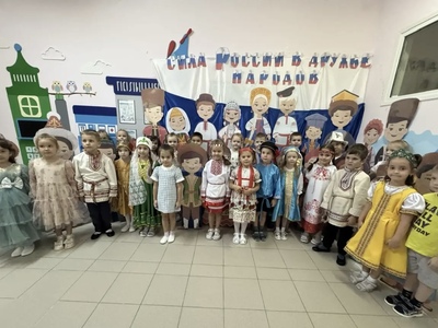 В течении недели ребята знакомились с историей праздника, с бытом, традициями и культурой народов на территории России. Была создана фотозона, где ребята в костюмах разных национальностей, исполнили песню Олега Газманова «Вперёд Россия» и прочитали стихотворения. А вечером вместе с родителями за кружечкой чая с пирогами и чак-чаком отвечали на вопросы викторины и наслаждались просмотром танца народов Кавказа.