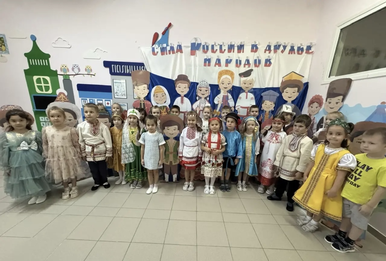 В детском саду № 34 «Берёзка» педагоги группы старшего дошкольного возраста № 2 «Брусничка» Кугубаева Р.Я., Миннуллина А.Л. и учитель-логопед Закатей Л.Н. организовали и провели краткосрочный детско-родительский проект «Сила России в дружбе народов!».